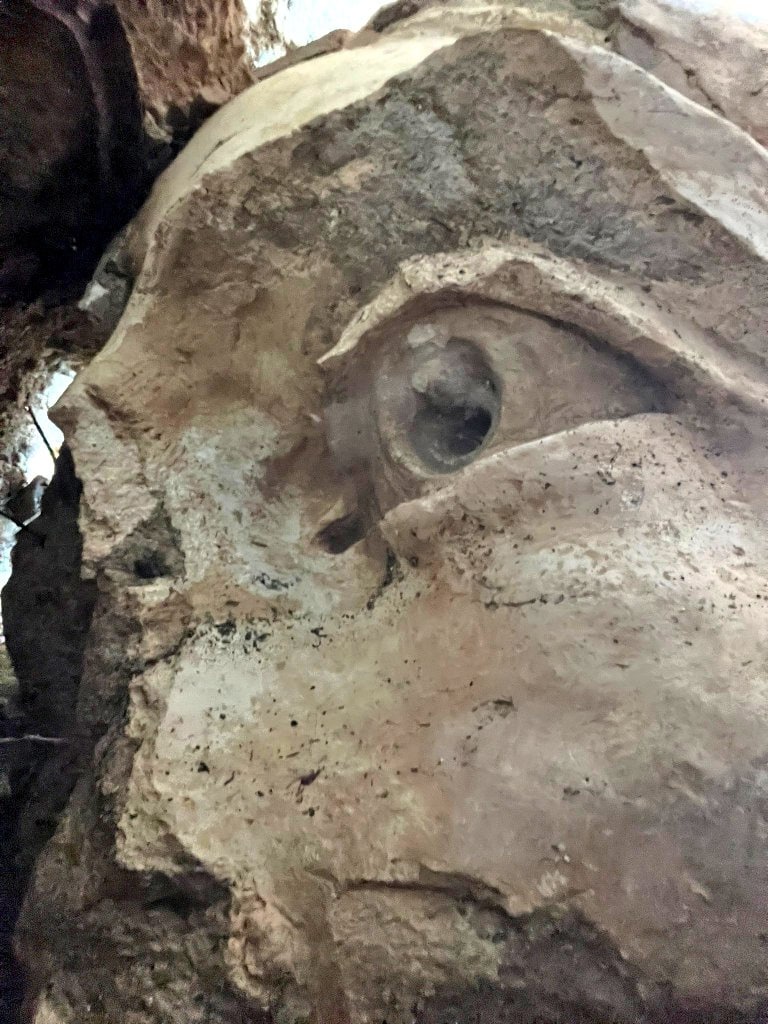 El hallazgo de la cabeza original de la escultura, caída en el interior del recinto del castillo, confirma la existencia de restos materiales del monumento destruido en 1936.